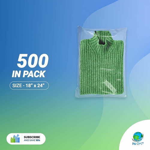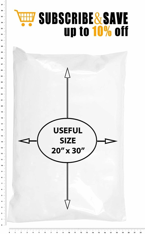 CLEAR FLAT BAGS PACK of 50 plastic pouches. Size: 20" x 30". Manufacturer size tolerance +/- 25". Plastic shipping bags provide outstanding low cost shipping protection for a wide variety of products. Perfect for packing products that you
