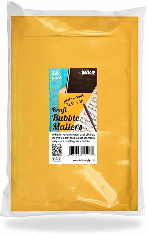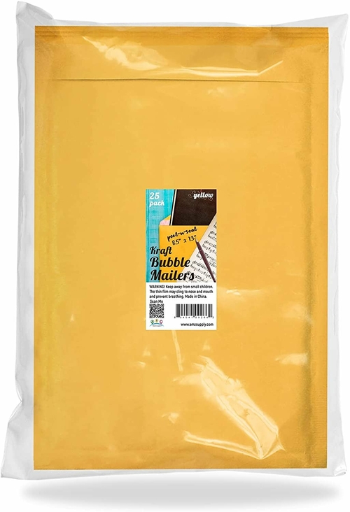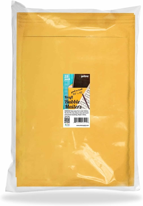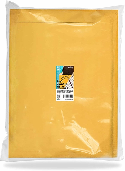 Heavy duty Bubble Envelopes 8.5x11 with strong seams and self sealing. Gold Kraft Air Bubble Mailers shipping envelopes. PACK of 25 mailing envelopes. LIGHT-WEIGHT for saving postal cost SIDED PROTECTION: a