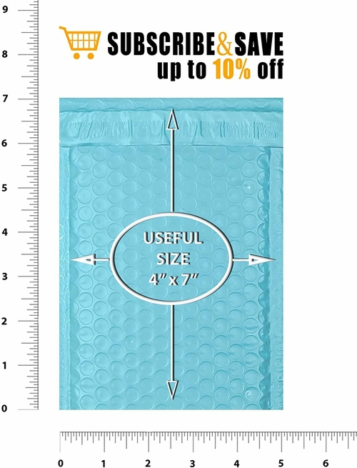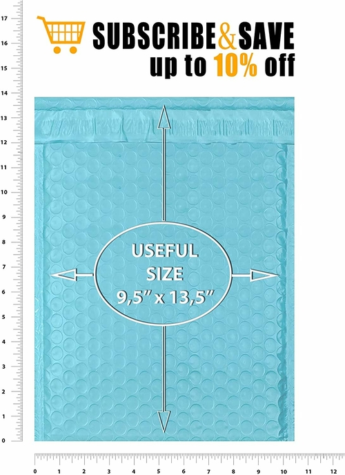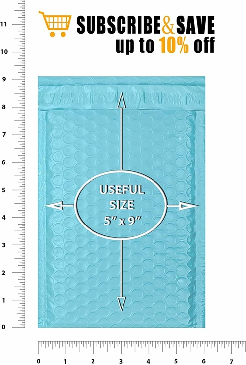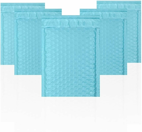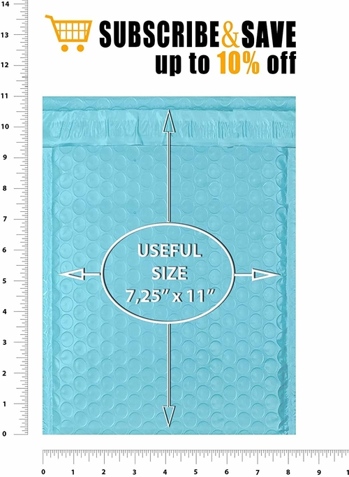 BLUE POLY BUBBLE ENVELOPES with Peel and Seal. PACK of 10 plastic padded mailers. Useful space 7.25" x 11". Manufacturer size tolerance +/- 25". Highest quality, structurally sound materials to provide both visual enhancement and security. Pad mailing bag