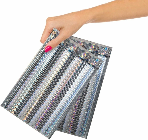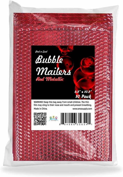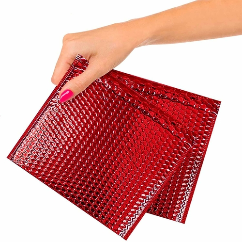 Metallic padded envelopes 6"1/2 x 10 1/2". Red bubble mailers for Valentine’s day. PACK of 10 mailing envelopes.Size: DVD CO