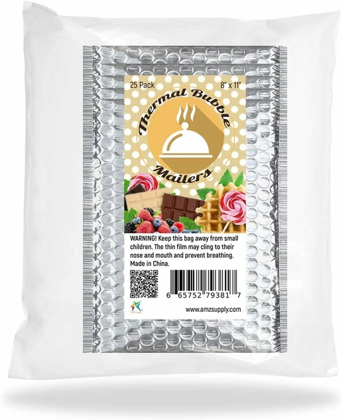 Pack of 25 Silver Thermal Insulated Bubble Mailers 8x11 Food Grade