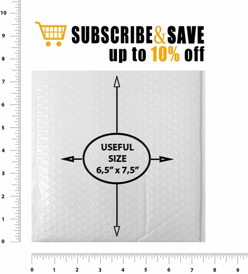 WHITE POLY BUBBLE ENVELOPES with Peel and Seal. PACK of 25 plastic padded mailers. Useful space 6.5" x 7.5". Manufacturer size tolerance +/- 25". Highest quality, structurally sound materials to provide both visual enhancement and security. Pad mailing ba