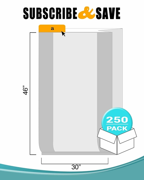 Pack of 250 Flat Poly Bags 30 x 46. X-Large Jumbo Clear Bags 30x46.