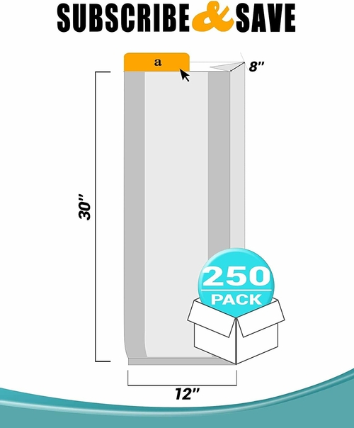 Dropship Pack of 250 Gusseted Poly Bags 12 x 8 x 30. Clear Polyethylene Bags