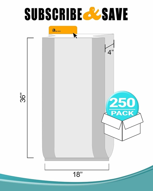 Pack of 250 Ice Bags with Twist Ties 18 x 4 x 36. Capacity 50 lbs.