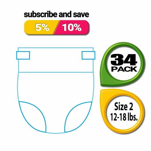Pack of 34 Baby Diapers Size 2 Disposable Unisex Diapers 12-18 lbs