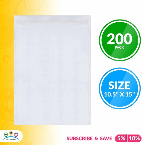 Bubble envelopes 10.5x15 with strong seams and self sealing. Large White Kraft Air Bubble Mailers shipping envelopes. PACK of 200 mailing envelopes. LIGHT-WEIGHT for saving postal cost SIDED PROTECT
