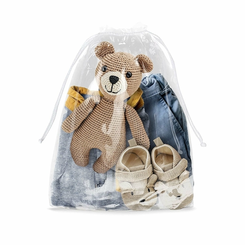 Clear drawstring poly bags make it easy to see the item within, so that in many bu