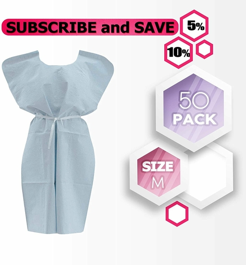 Pack of 50 Disposable Tissue/Poly/Tissue Gowns 21 x 36. Blue Pediatric
