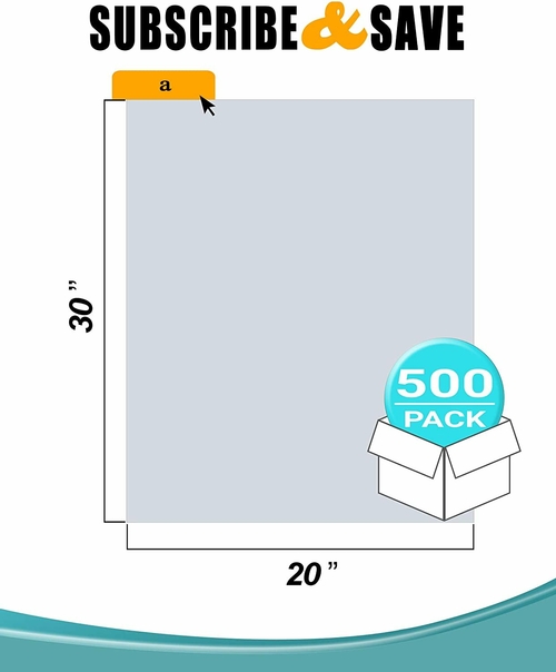 Pack of 500 Flat Poly Bags 20 x 30. Jumbo Clear Polyethylene Bags