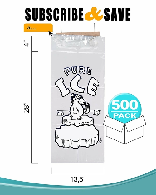 Wicketed Plastic Ice Bags with Twist Ties 13.5" x 28" + 4"