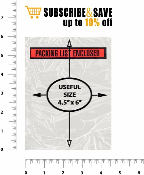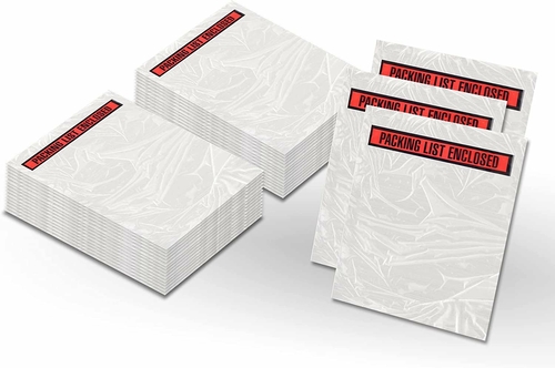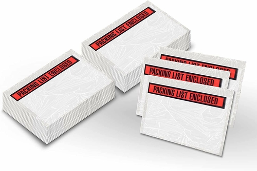 Packing List Envelopes with "Packaging List Enclosed" Printed. 100 pack. Size 7" x 5.5". Thickness 2 mil. Super strong adhesive. Pressure sensitive self seal. Packing list envelopes are an important part of the shipping process. Reduces confusion with ord