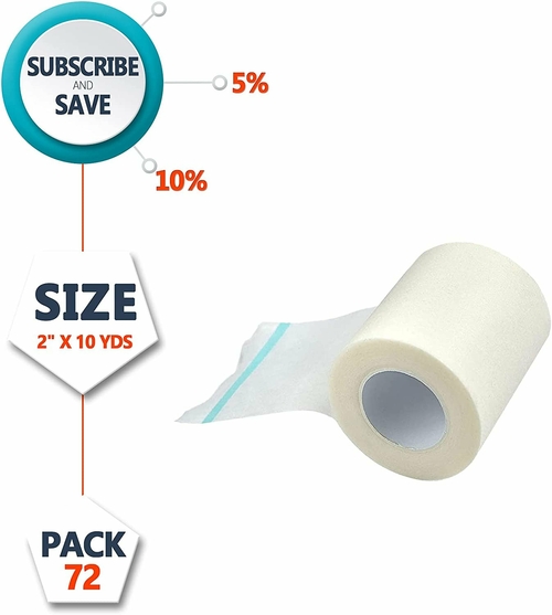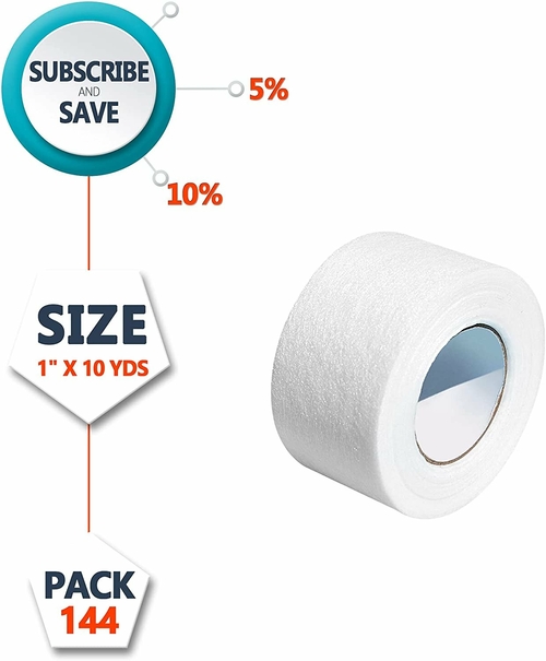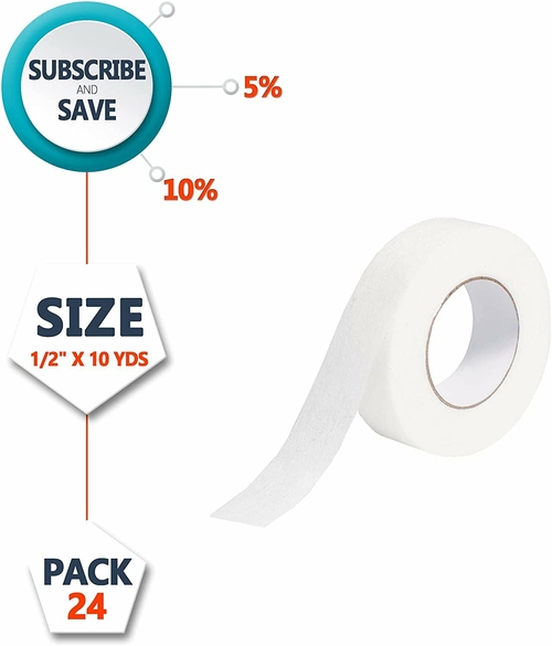 Product details:Size: 1 inch wide x 10 yards lenghtMaterial: PaperNon-SterileQuantity: 12 rolls per pack, 12 packages per case (total: