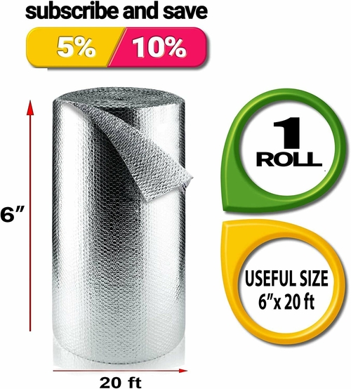 Pipe Wrap Insulation 6 Inch x 20 Feet. Bubble Reflective Foil