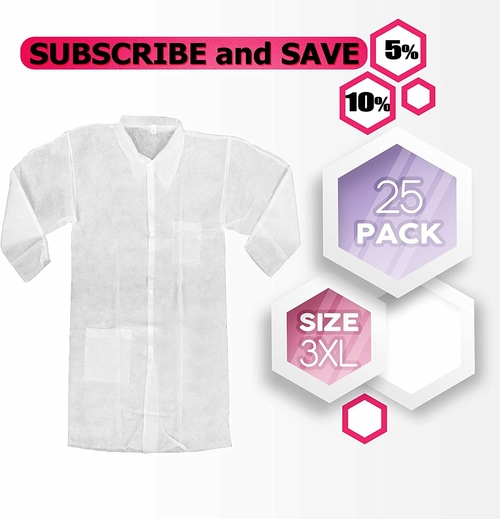 Poly Lab Coats. Pack of 25 White Spunbond Polypropylene Lab Coats