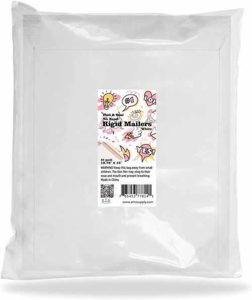 Large rigid envelopes 12.75” x 15” Color: White Quantity: 25 count Rigid mailing envelopes - a perfect way to dispatch a wide variety of non-fragile, low-profile items that require rigid mailing protection. OPENING