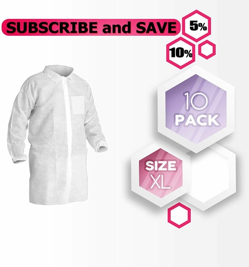 Surgical Gowns. Pack of 10 White Disposable Gowns X-Large. 50gm/m2