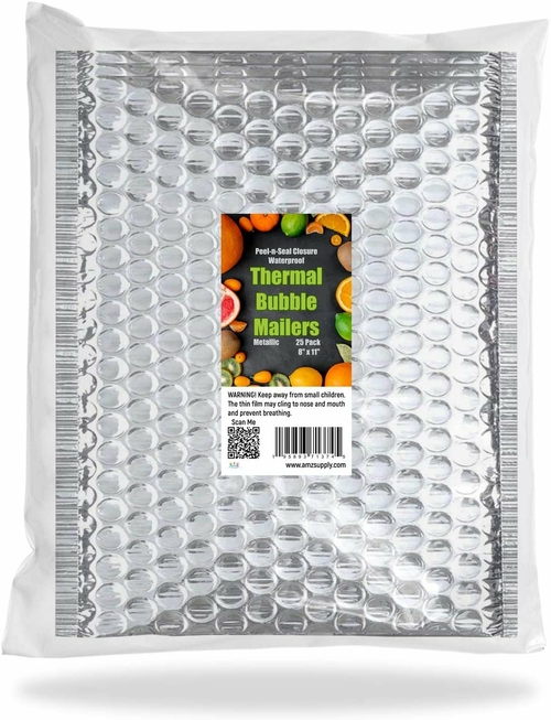 Thermal Bubble Mailers 8 x 11 Inch Size. Pack of 25 Metallic Thermal