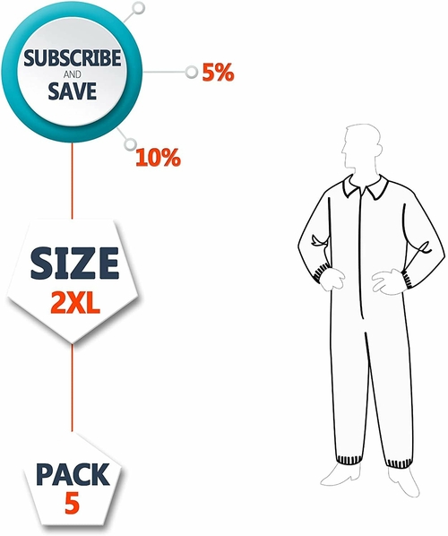 Dropship White Disposable Coverall. Large SMS 50 gsm Overall with Elastic Cuffs
