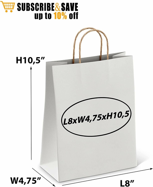 White Shopping Bags Bulk Pack of 25 Large Paper Bags 8 x 4.75 x 10.5