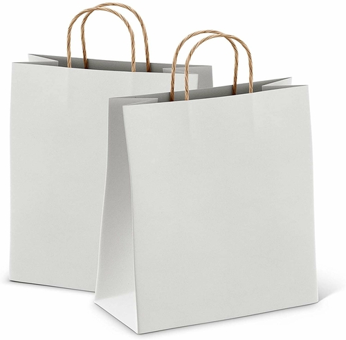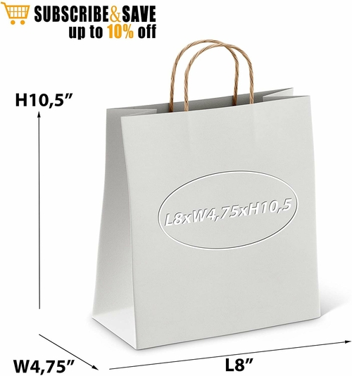 White Shopping Bags Bulk Pack of 400 Large Paper Bags 8 x 4.75 x 10.5