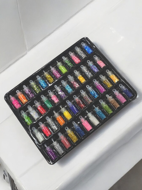 Nail Glitter | Glitter Set of Nail Decoration | Nail Art Tool for Nail Decoration | Multicolour - Set of 48 Bottles