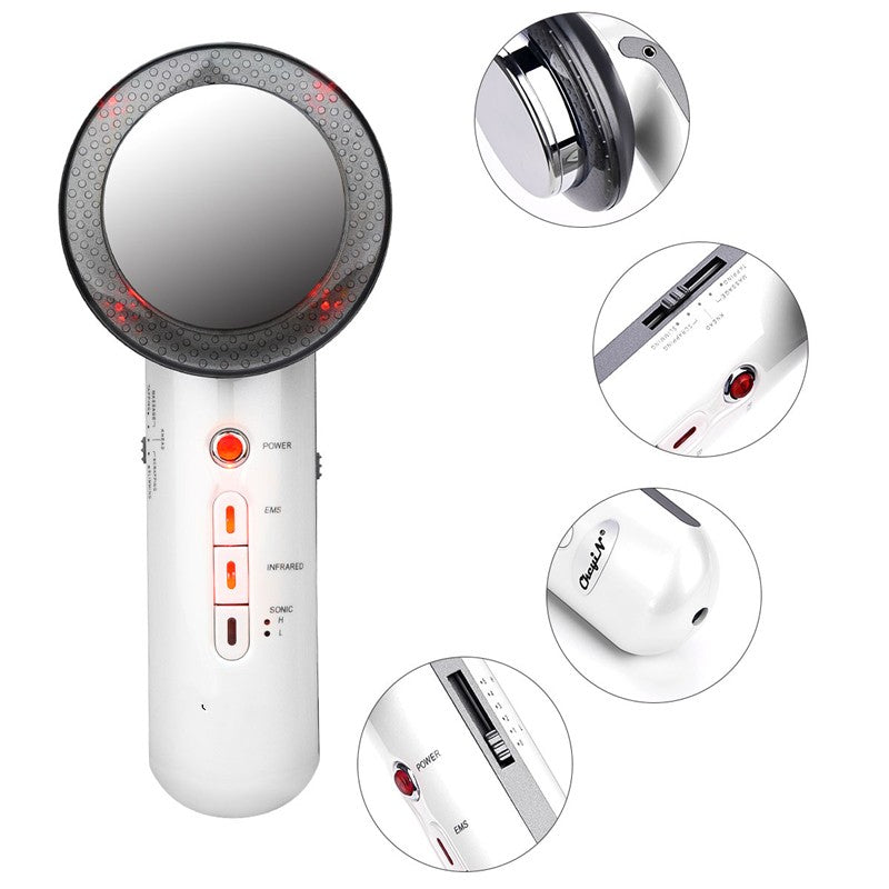 The 3 In 1 Ultrasonic Far Infrared EMS Facial Body Slimming Massager is an innovative device designed to enhance your skincare routine and promote body slimming. This multifunctional massager combines ultrasonic technology, far infrared therapy, and EMS (Electrical Muscle Stimulation) to provide a comprehensive solution for skin rejuvenation and fat reduction. Whether you want to target your face or body, this device is perfect for achieving your beauty goals.
