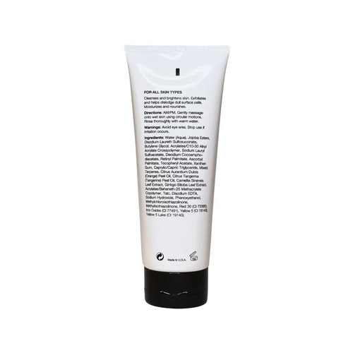 \nIntroducing our radiant Vitamin C Cleanser. With a gentle gel texture, the Vitamin C Cleanser effortlessly sweeps away makeup and impurities, ensuring your skin remains free from any unwanted elements. Experience the gentle exfoliating prowess of the cleanser, working to dissolve lackluster and compromised skin. \n \nThis vitamin C packed cleanser will not only brighten your skin, but also enhance collagen production, reducing hyperpigmentation for a more even skin tone. Enriched with the goodness of green tea and vitamins A and E, this formula extends its care to tender skin, effectively alleviating irritations stemming from environmental stressors. Lastly, the ginkgo biloba leaf extract enhances blood flow circulation of your skin. With a gentle scent of natural tangerine and orange peel oil, this Vitamin C Cleanser offers a touch of luxury that calms and rejuvenates your skin to its fullest potential. \n \nMade in North America. \n