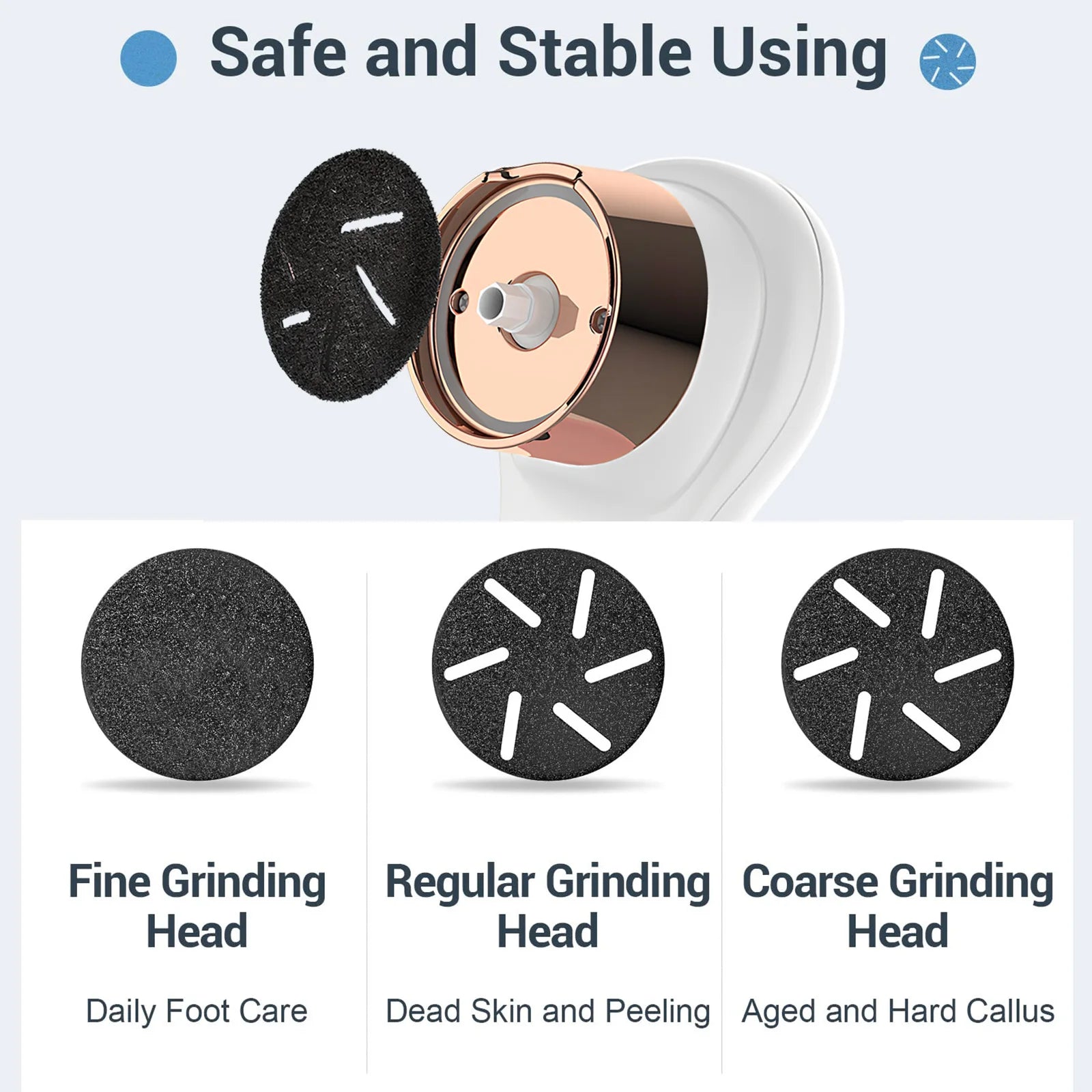 This foot grinder comes with a variety of coarse grinding heads, allowing you to choose the one that best suits your needs. Whether you require a gentle touch or a more aggressive approach to callus removal, you can easily switch between heads for optimal results. This versatility makes it suitable for all skin types.