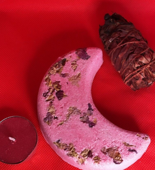 Moon Ritual bath are made with rose petals. Reiki is charged for aiding in harnessing the Moon's energy. With Dead Sea salt and skin moisturizing Cocoa Butter and Coconut Oil. Manifest magic and bathe under the Moon.