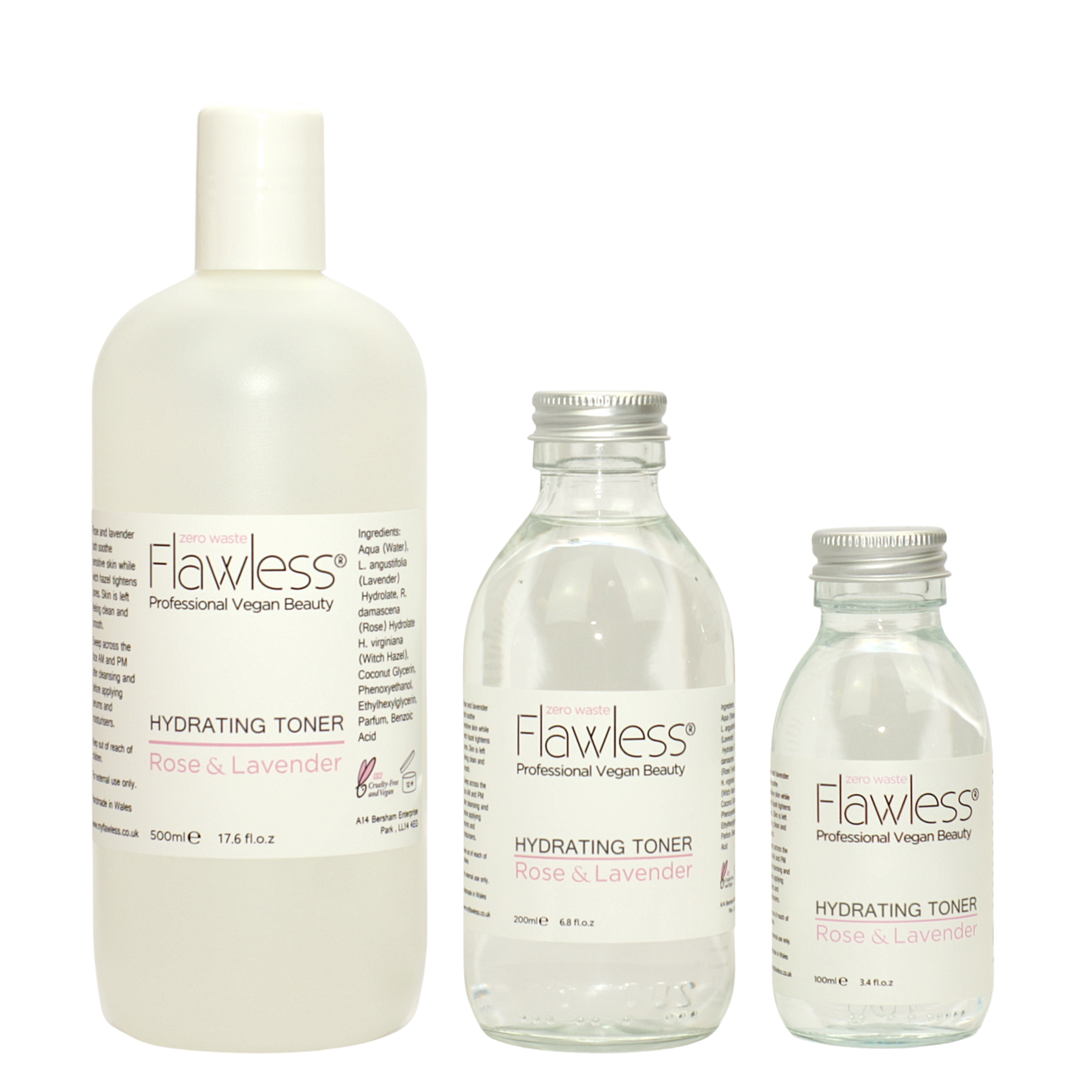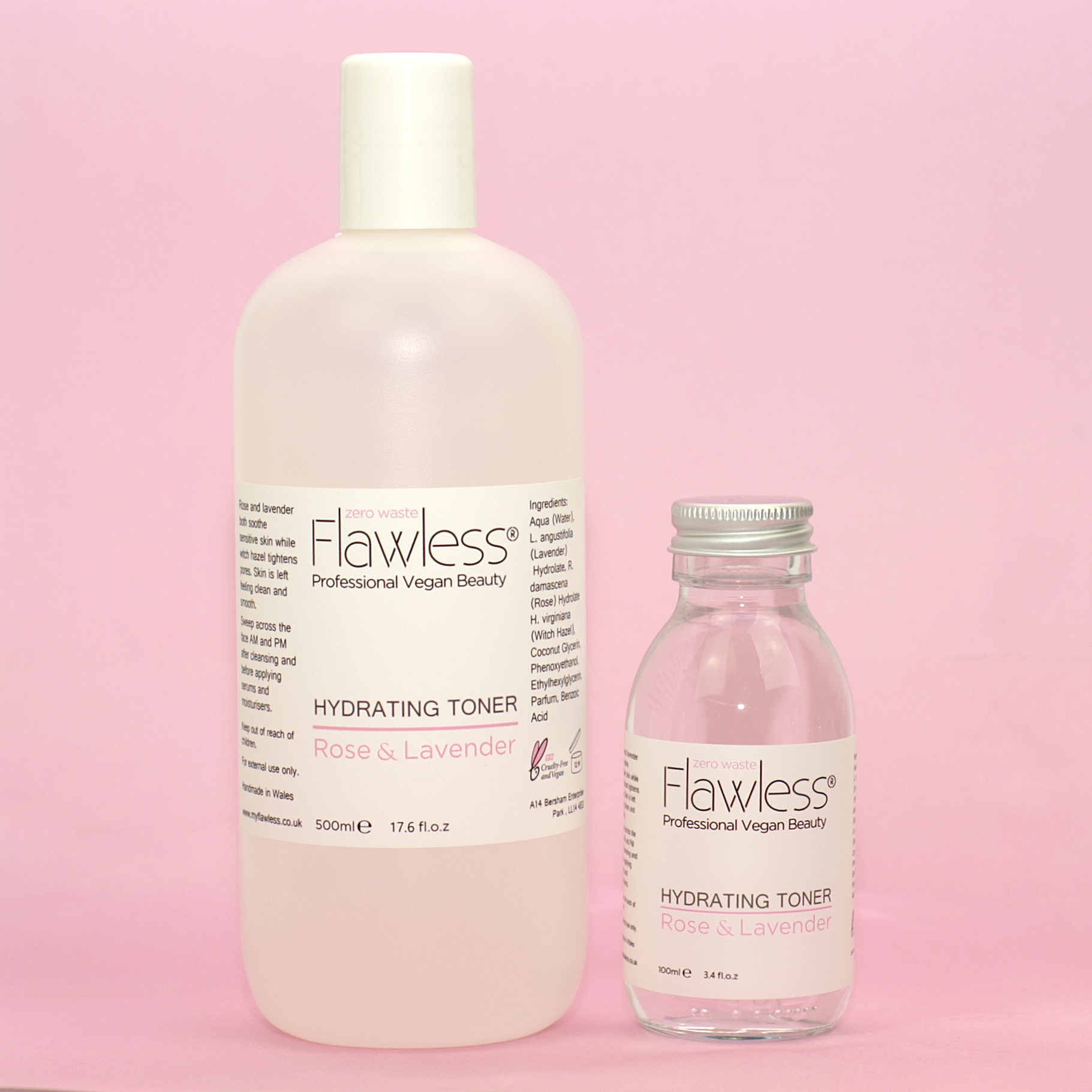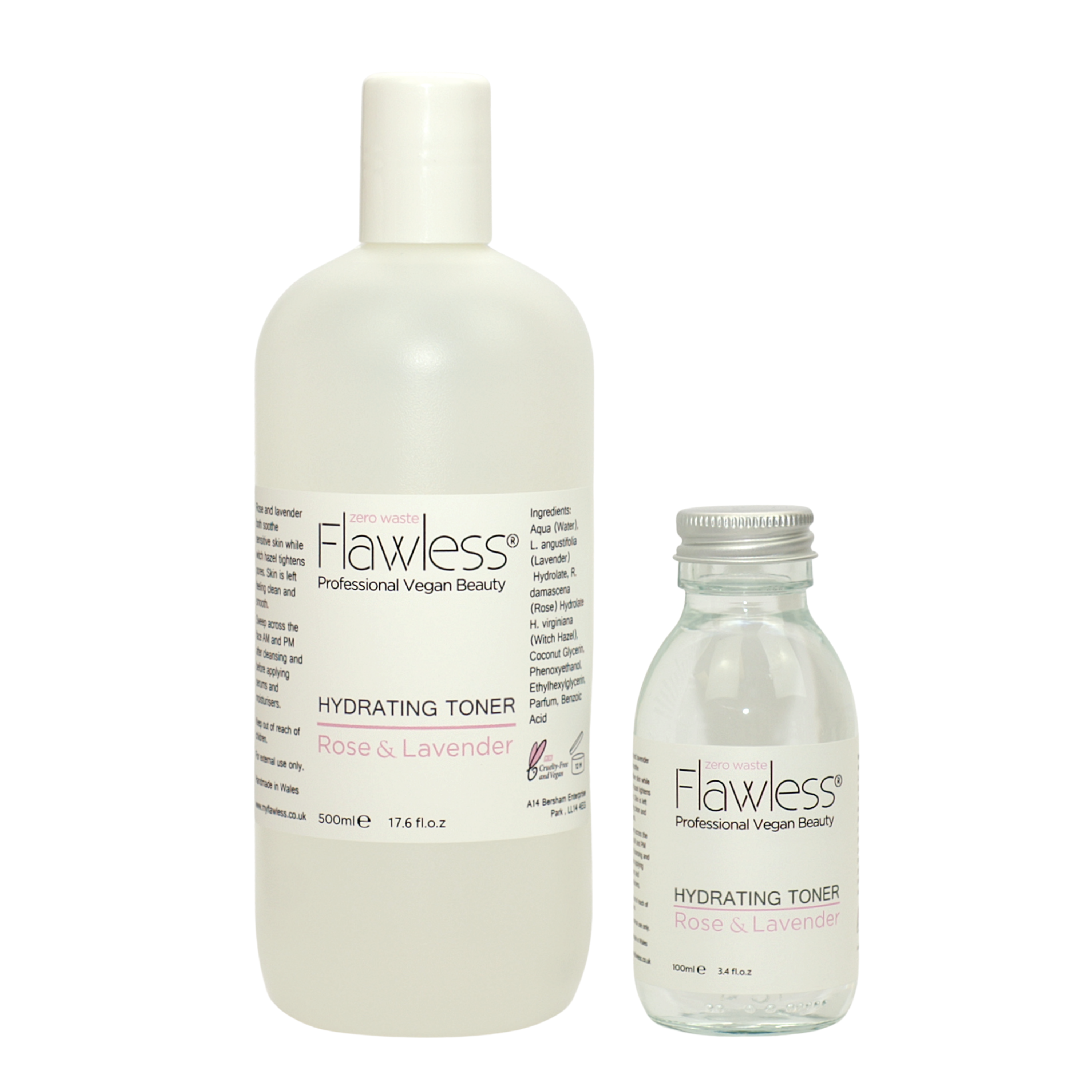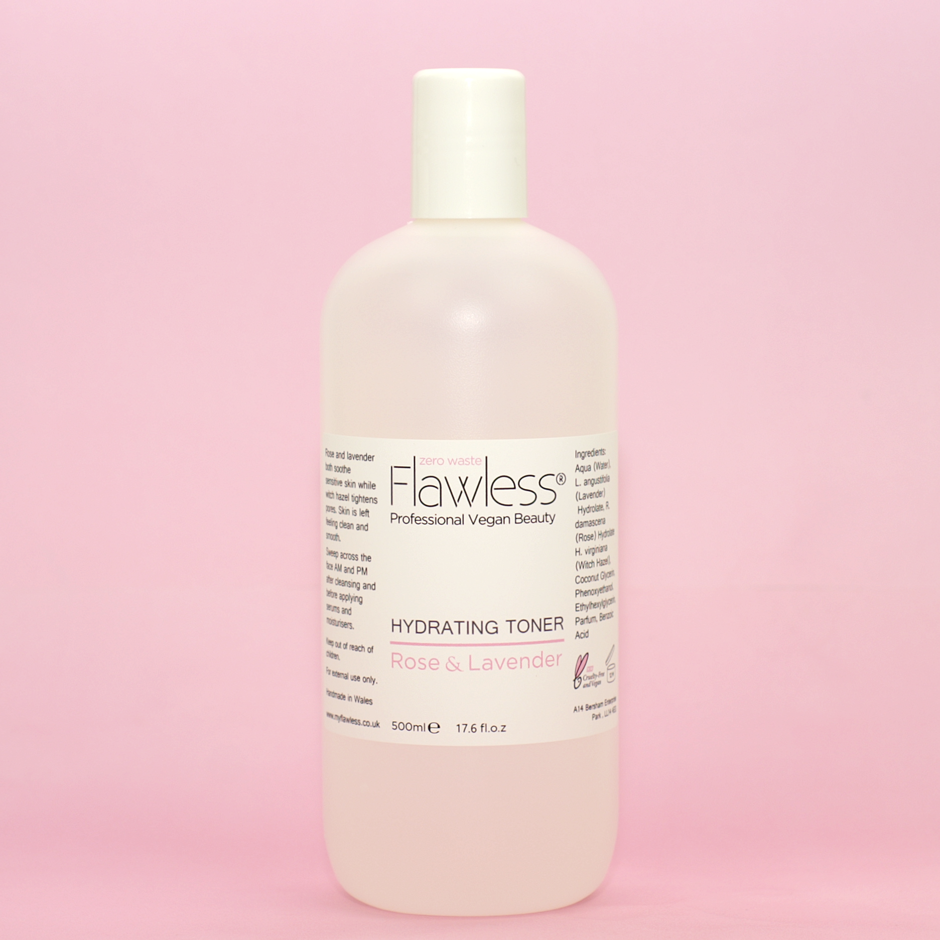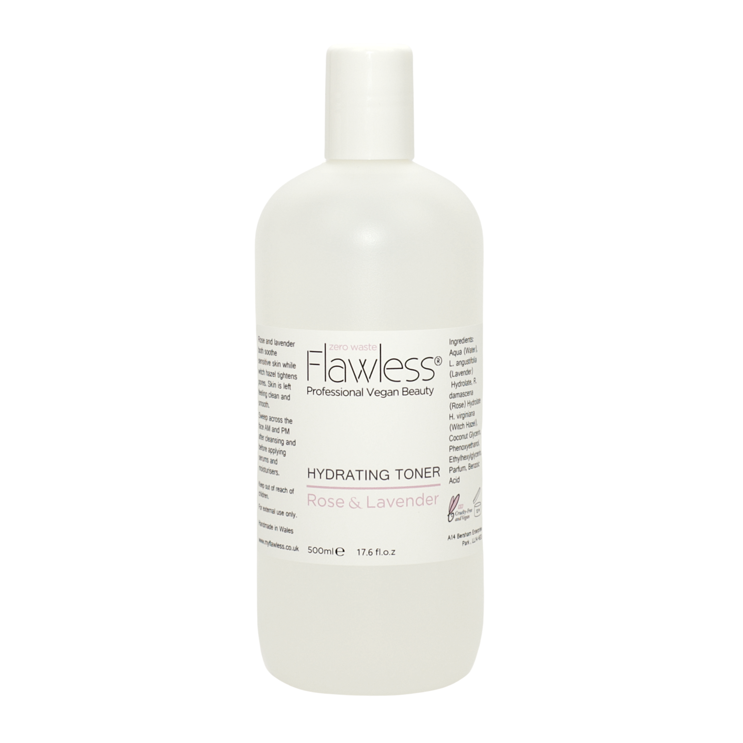 Our Hydrating Toner Refill comes in a 500ml recycled plastic bottle with a screw cap lid, ensuring that your toner is stored safely while being environmentally friendly. The ingredients include Aqua (Water), L. angustifolia (Lavender) Hydrolate, R. damascena (Rose) Hydrolate, H. virginiana (Witch Hazel), Sodium Lactate, Coconut Glycerin, Phenoxyethanol, Ethylhexylglycerin, and Parfum. Each ingredient has been carefully selected to provide the best results for your skin.