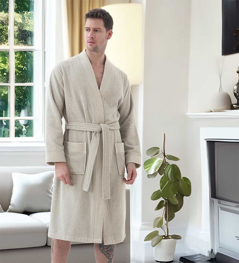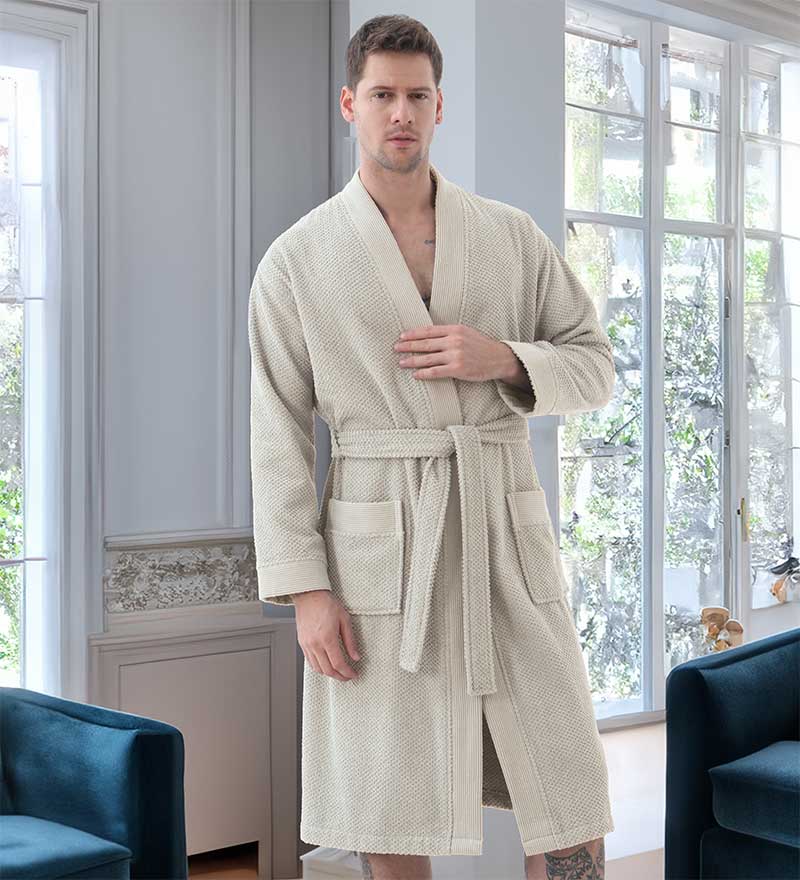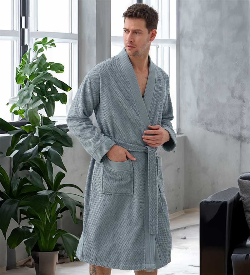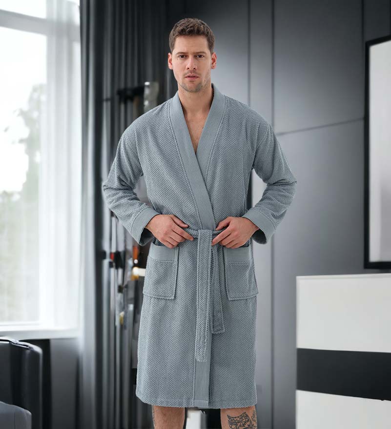 The Men's Organic Turkish Cotton Terry Kimono Robe is available in a variety of earthy tones including Stone Beige, Blue, Blue-Grey, Charcoal, Navy Blue, Gray, and White. These colors not only reflect a natural aesthetic but also allow you to choose a robe that fits your personal style. Whether you prefer a classic look or something more modern, there’s a color option for everyone.