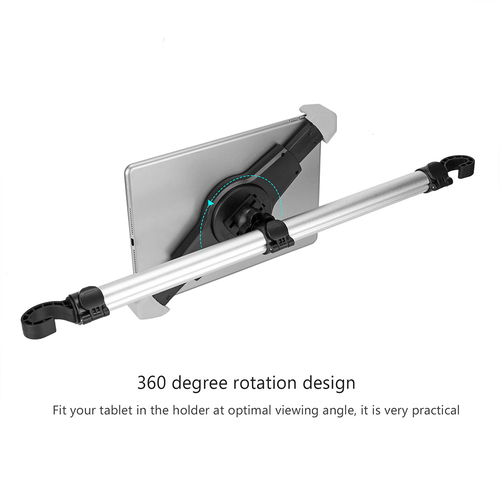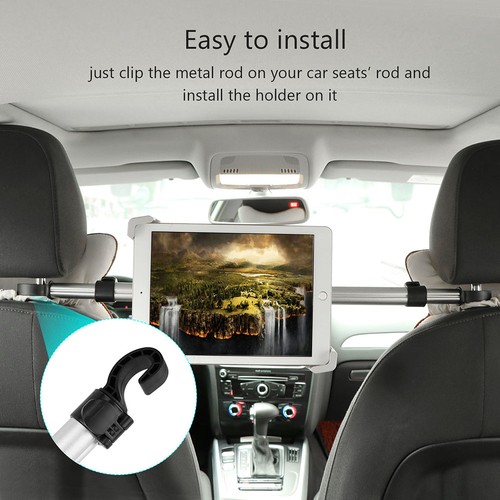 Specification: Type Scalable Car Seat Tablet Holder Material ABS + Aluminum Quantity 1pc Item Color Silver + Black Applicable Device Most 7-10 inch tablets Rod Length 45-69cm/17.7-27.2" Tablet Holder Width: 8.3cm/3.3"