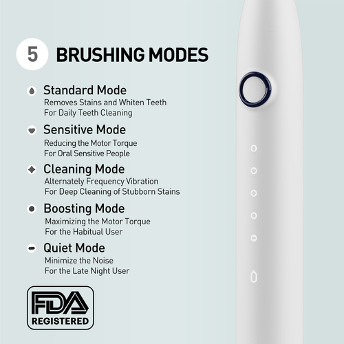 • 【5 CLEANING MODES】This ARKMA.CO rechargeable electronic toothbrush for adults offers 5 different brushing modes - standard/sensitive/cleaning/boosting/quiet, meeting all oral care needs. Our electric toothbrush has a memory mode that saves the last cleaning mode used for your convenience. The Sonic electric toothbrush also comes with a cleaning mode indicator that shows the current mode.