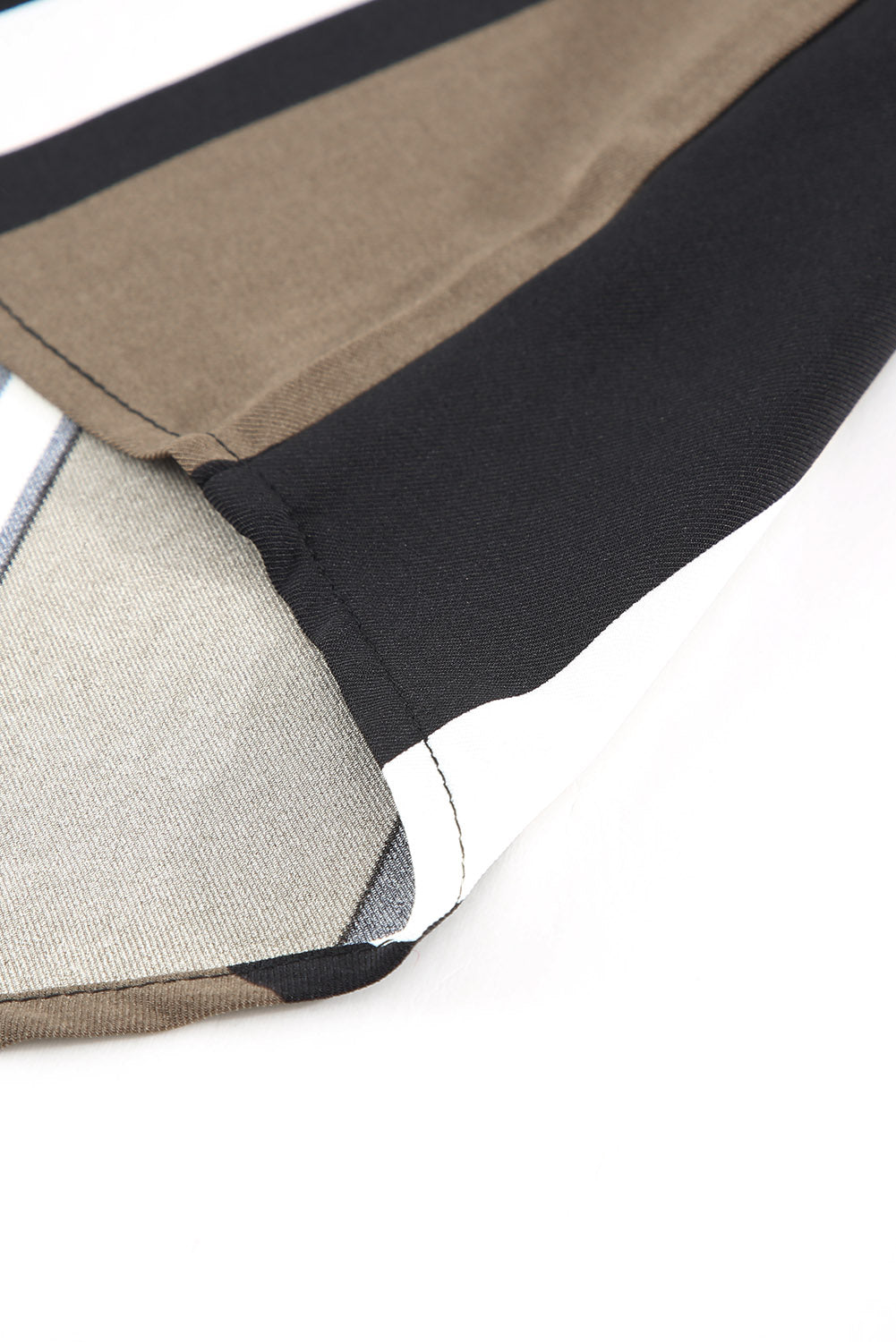 Black and brown striped modern women shirt with button-down front and long sleeves, perfect for casual and stylish outfits.