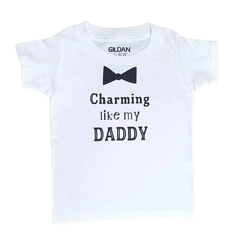 Introducing the Charming Like My Dad Shirts, a perfect blend of comfort and style for those who want to celebrate their bond with their father. Made from 100% preshrunk cotton, these shirts are designed to provide a soft and breathable experience, making them ideal for everyday wear. The charming design features the phrase 'Charming Like My Daddy', which adds a playful touch to your wardrobe.