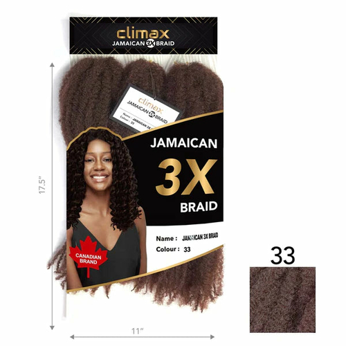 The Climax 3X Jamaican Braid is a revolutionary hair product designed for those who desire a natural look with the convenience of synthetic fibers. This braid features a soft texture that mimics the feel of human hair, making it an ideal choice for anyone looking to enhance their hairstyle without compromising on comfort or style.