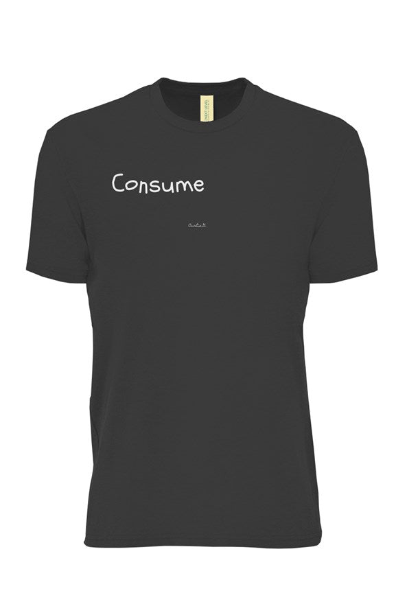 The Eco Performance Tee - Consume is not just a t-shirt; it's a statement of your commitment to sustainability and an active lifestyle. Crafted from 70% recycled materials, this tee is designed to keep you comfortable while also helping to save the planet. Each shirt is made using approximately three recycled water bottles, showcasing how fashion can be both eco-friendly and functional.