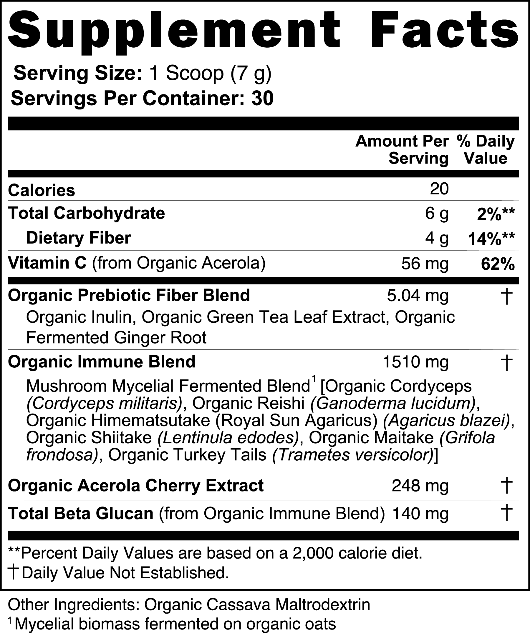 Research has shown that polysaccharides derived from various immunomodulating mushrooms can significantly support the human immune system. Our Fermented Mushroom Blend is crafted to provide these benefits in a convenient form. The pre-digested, fermented organic mushrooms in this product are packed with naturally occurring vitamins, minerals, and immunomodulating polysaccharides, making it an excellent addition to your daily routine.