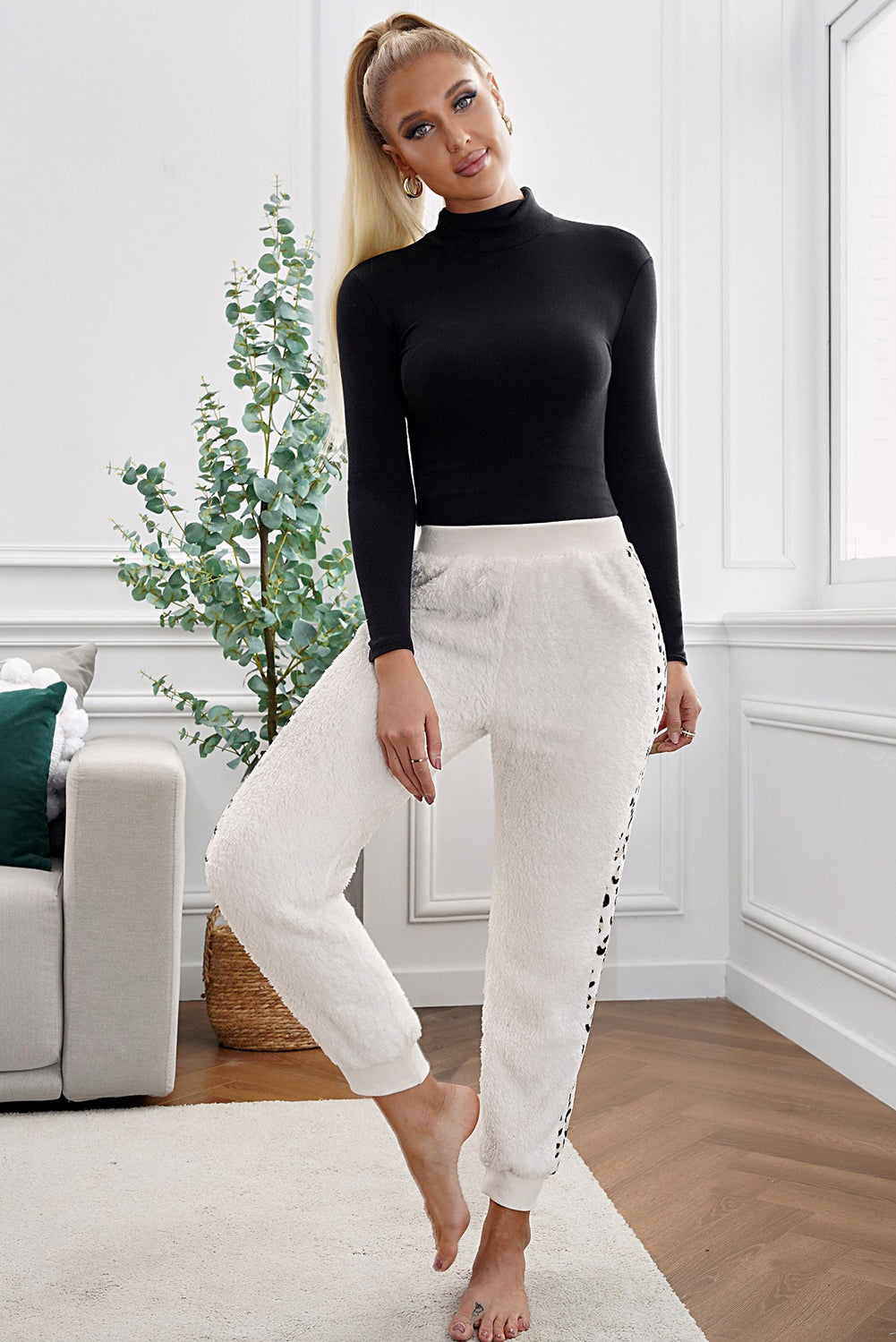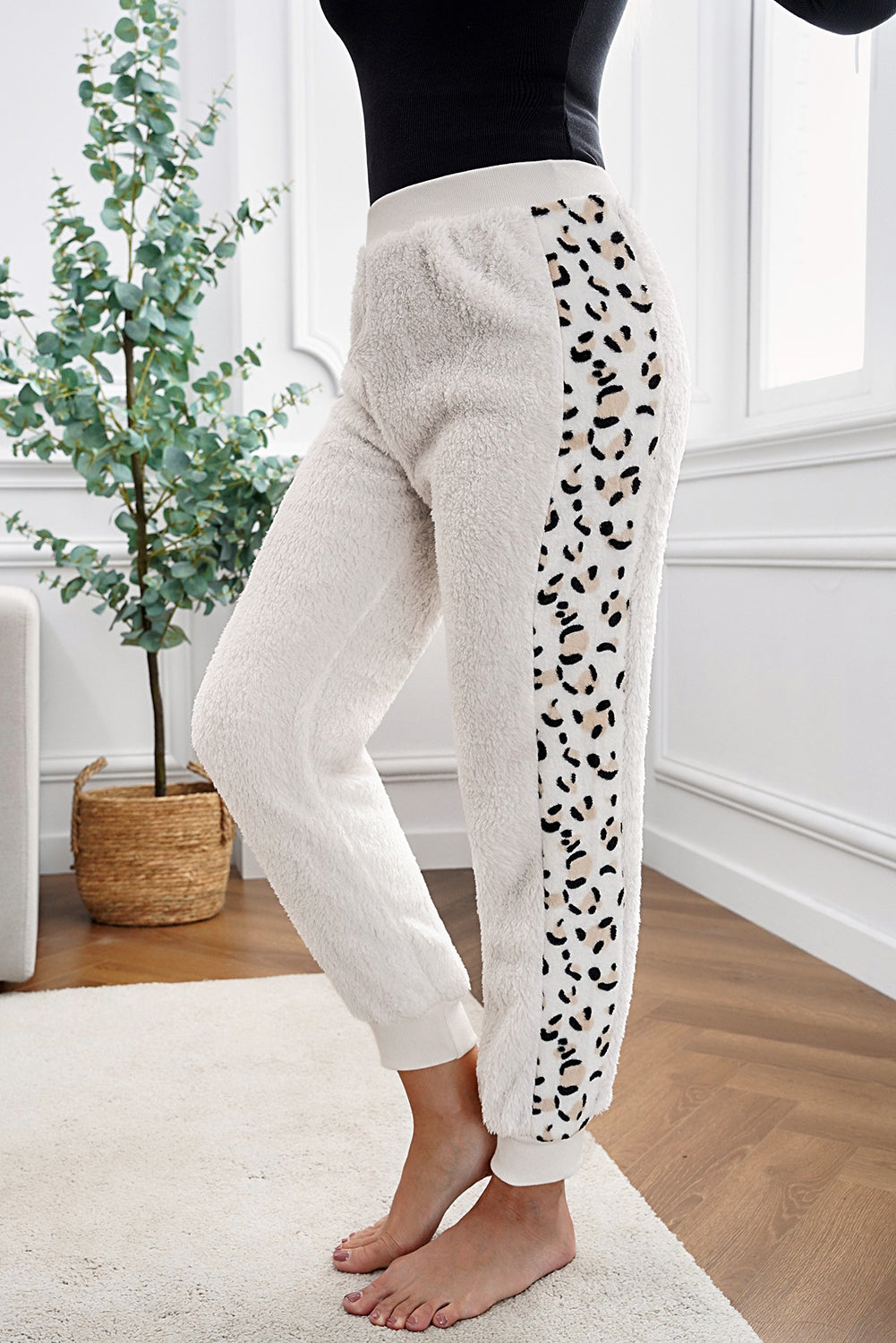 In summary, the Leopard Patchwork Plush Jogger Pants are a must-have addition to your winter wardrobe. With their stylish design, comfortable fit, and versatility, these joggers will keep you looking great while staying warm. Don't miss out on the opportunity to elevate your cold-weather fashion with these trendy jogger pants!