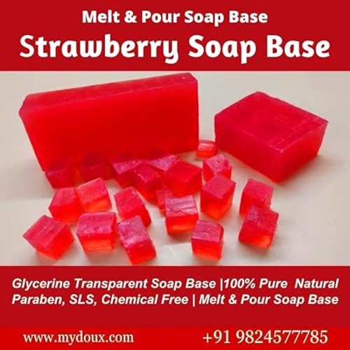 Mydoux Glycerine Soap Base for Soap Making - Transparent Cut Melt & Pour Base (Strawberry, 200 Grams) is a high-quality, natural, and skin-friendly soap base designed for DIY soap makers. Infused with the sweet, refreshing scent of strawberry, this glycerine soap base is perfect for creating customized handmade soaps that cleanse, moisturize, and nourish the skin while offering a pleasant, fruity fragrance. Transparent Cut Melt Pour Base (Strawberry)