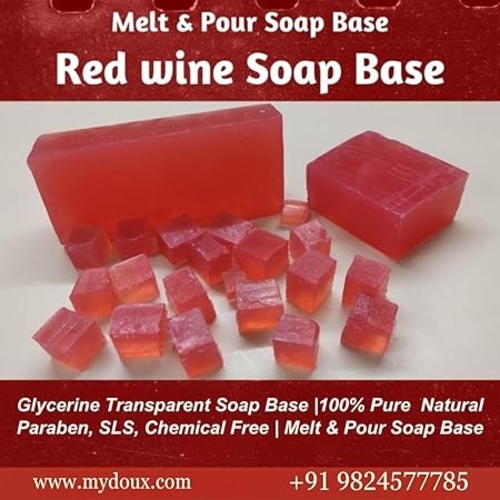 Mydoux Glycerine Soap Base for Soap Making - Transparent Cut Melt & Pour Base (Red Wine, 4 kg) is a premium-quality, natural glycerine soap base that combines the luxurious scent and benefits of red wine with the moisturizing properties of glycerine. This easy-to-use, melt and pour soap base is perfect for creating beautiful, custom soaps that not only look good but also nurture the skin with each use.Transparent Cut Melt Pour Base