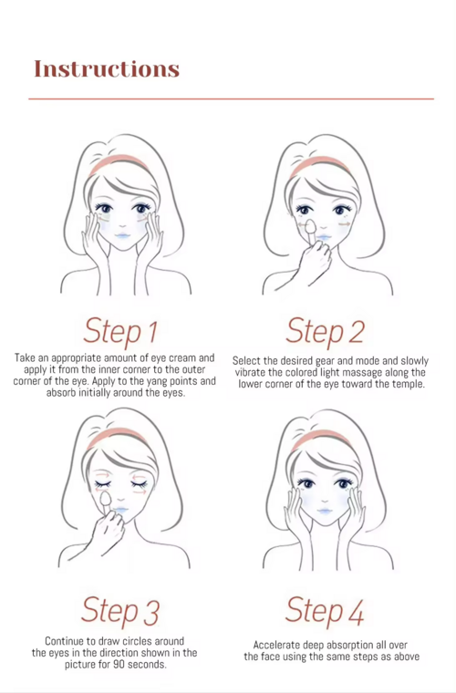 2.High-frequency vibration of 13,000 times per minute effectively promotes eye movement, soothes the eye area, relieves eye fatigue, and fades fine lines, bags under the eyes, and dark circles.