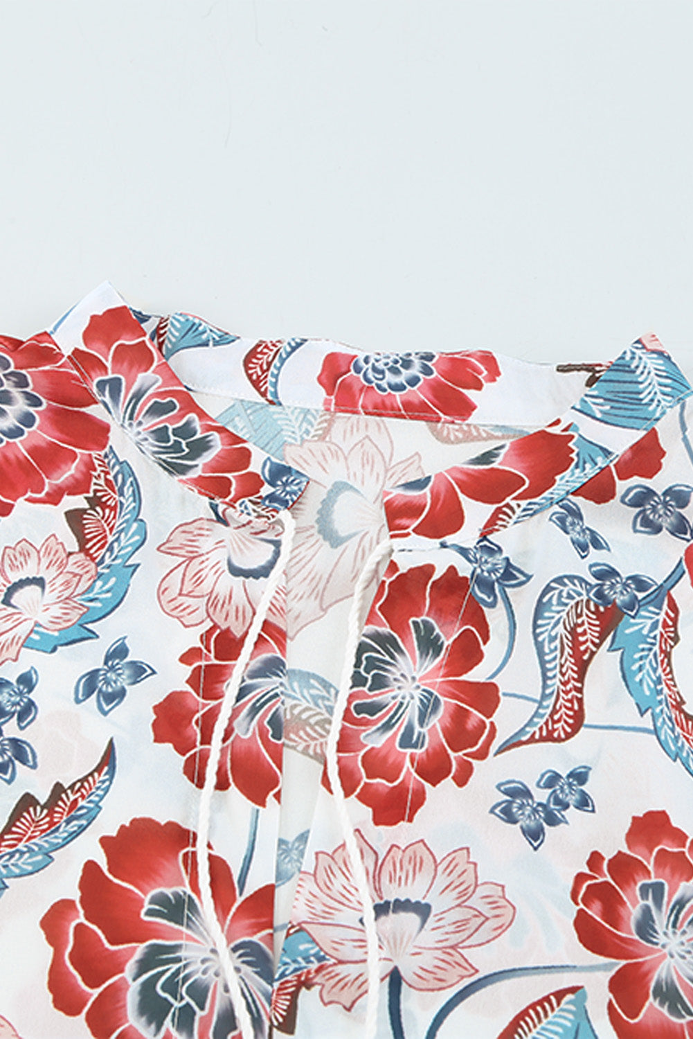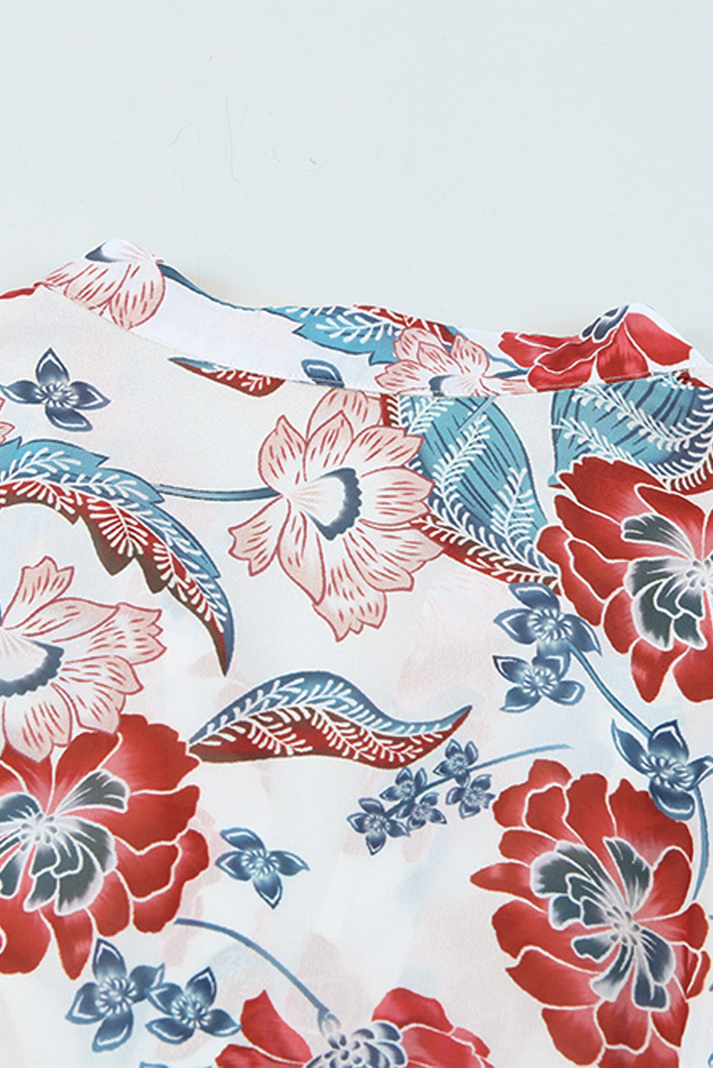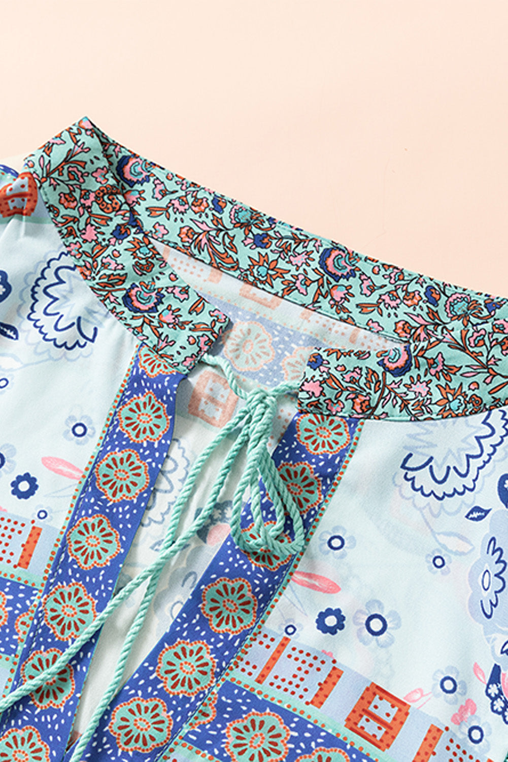 The Split Neck Bubble Sleeve Floral Patchwork Blouse is incredibly versatile. Pair it with your favorite shorts for a laid-back summer look, or dress it up with a statement necklace and tailored pants for a chic office outfit. The loose fit style allows for easy layering, making it a great choice for transitional seasons.