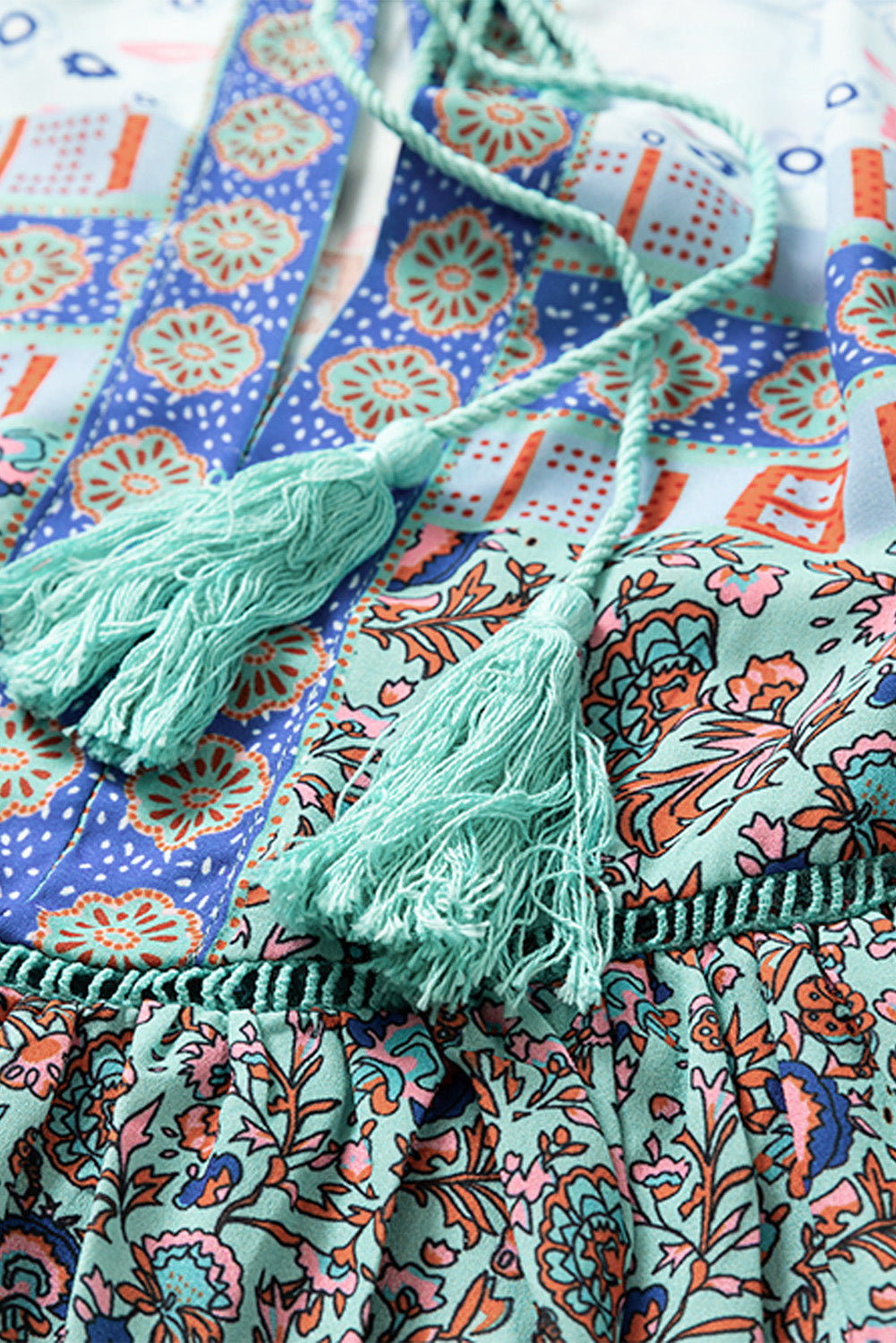 To maintain the quality of your blouse, it is recommended to wash it by hand in 30-degree water. Hang to dry in the shade and avoid bleaching to preserve the vibrant colors of the floral patchwork. Please note that there may be slight variations in color due to different screen displays.