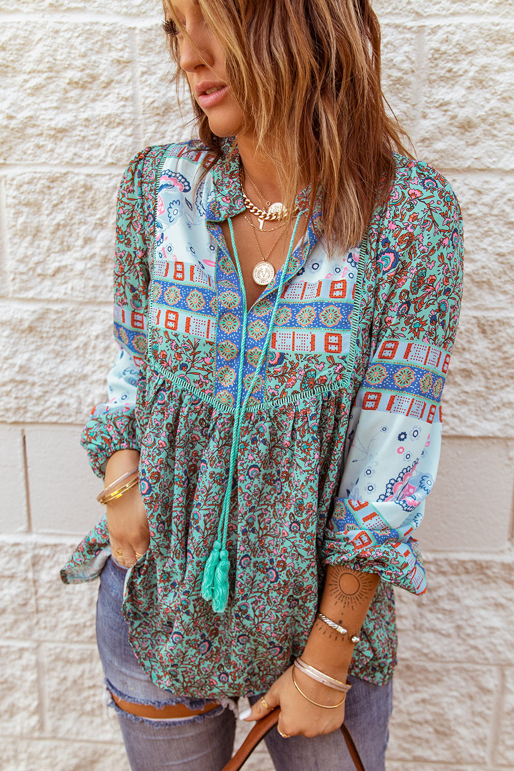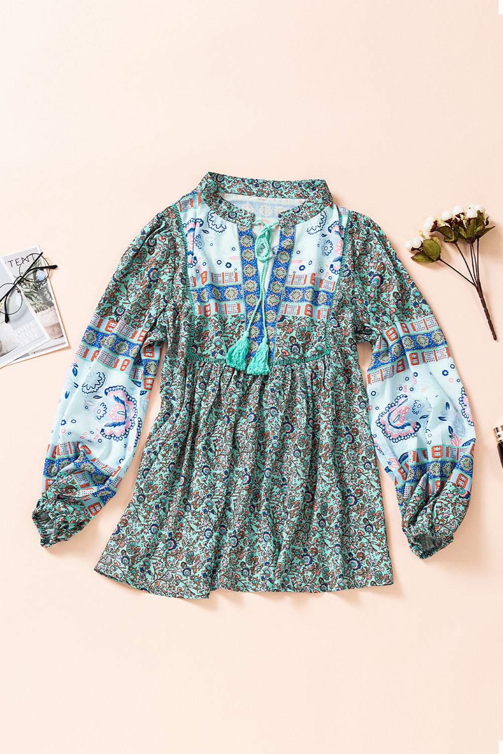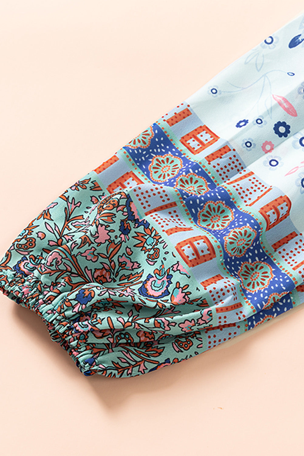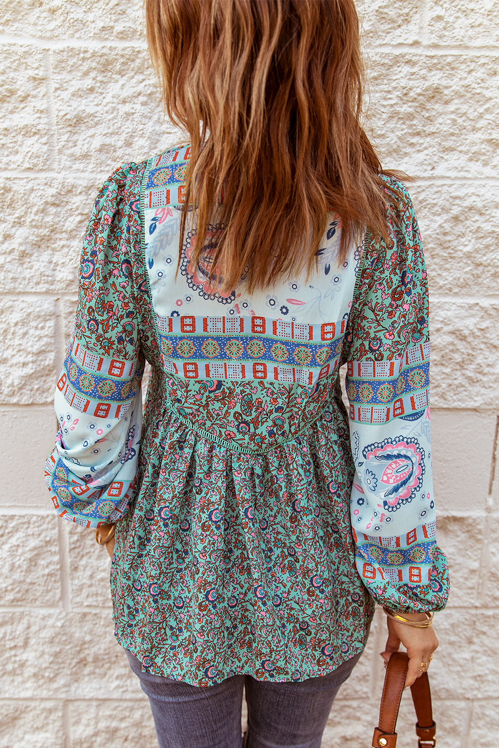 Don't miss out on adding the Split Neck Bubble Sleeve Floral Patchwork Blouse to your collection. It's a versatile piece that you'll reach for time and time again, making it a smart investment for your wardrobe.