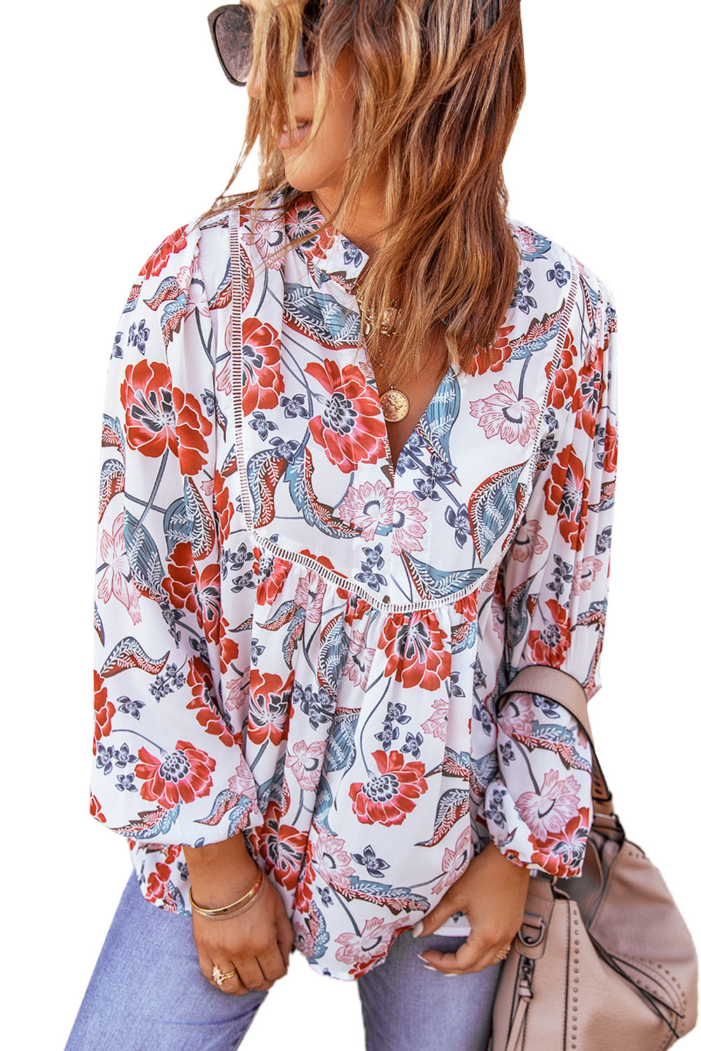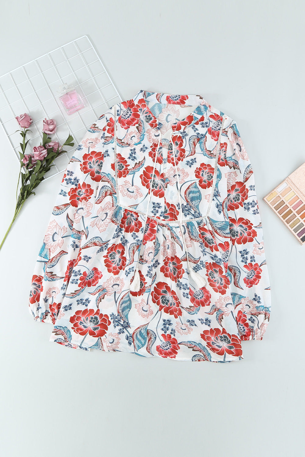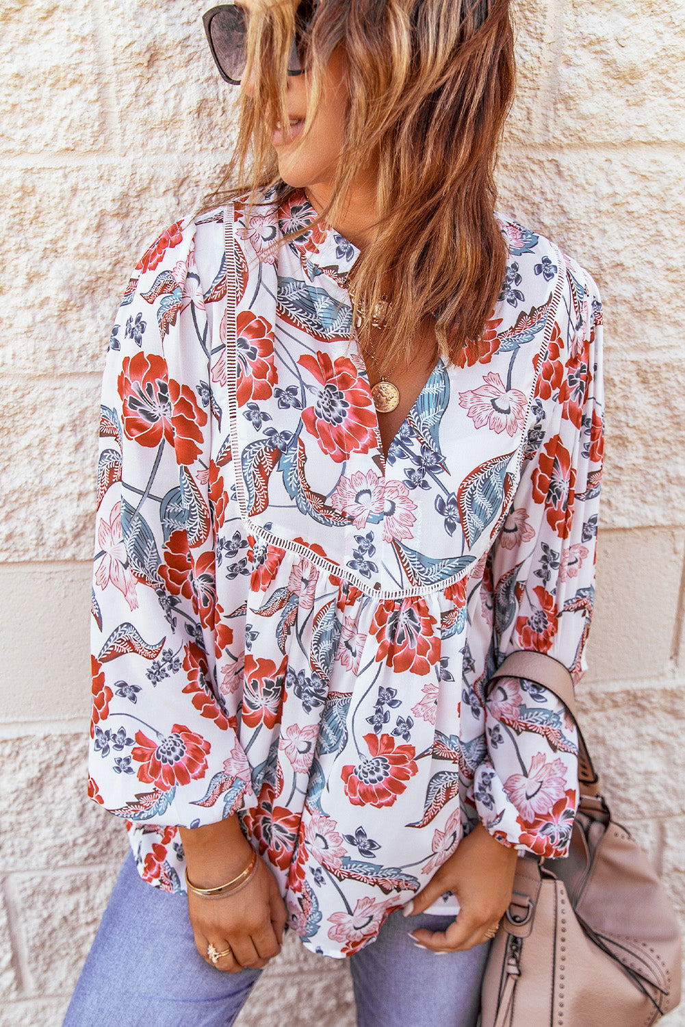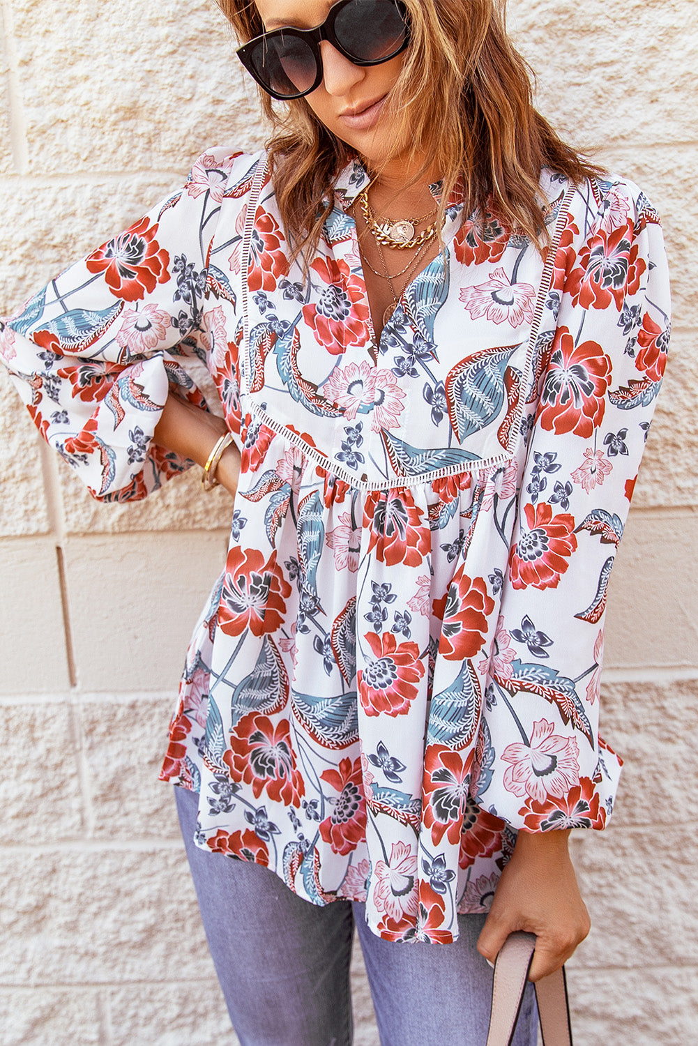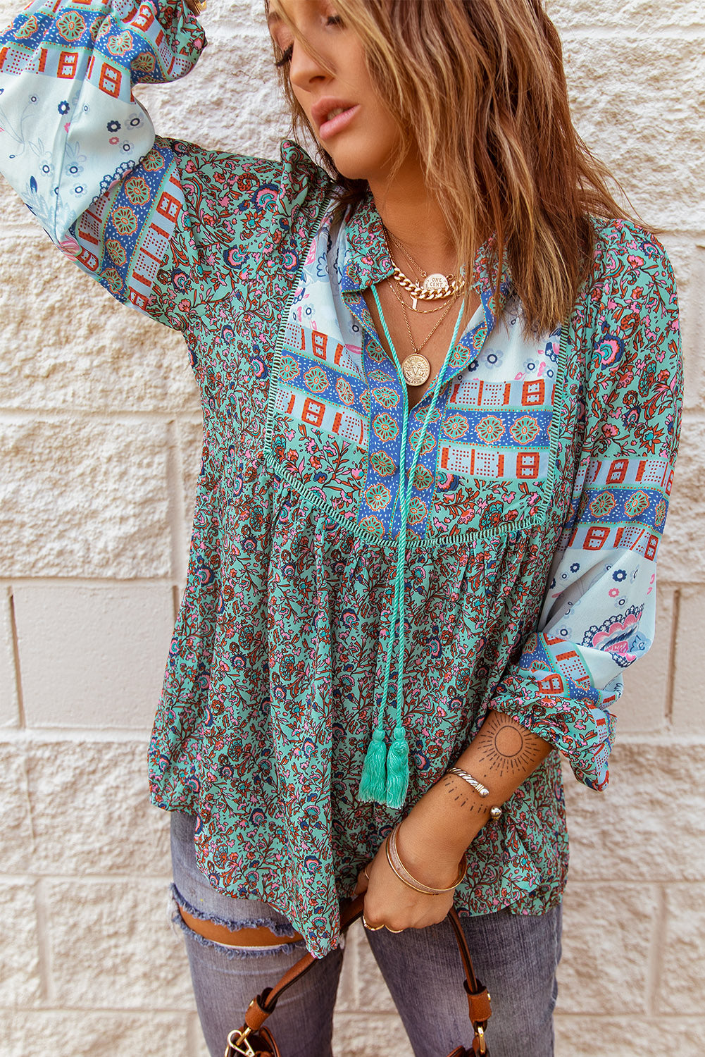 Don't miss out on adding the Split Neck Bubble Sleeve Floral Patchwork Blouse to your collection. It's a versatile piece that you'll reach for time and time again, making it a smart investment for your wardrobe.