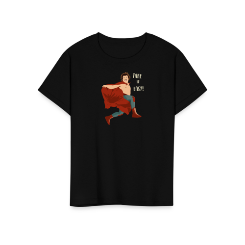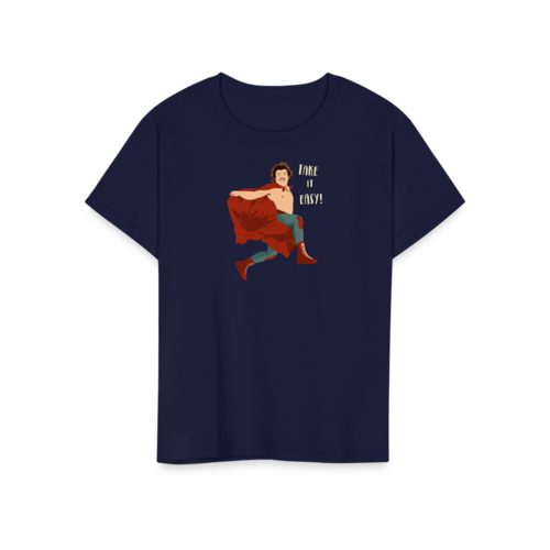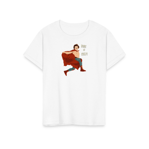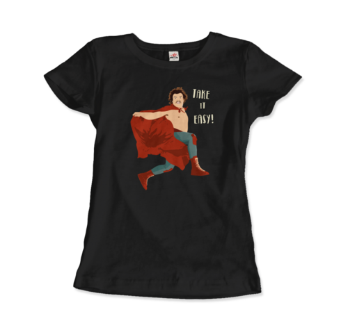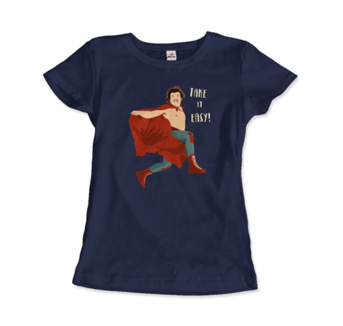 Introducing the 'Take It Easy, Nacho Libre, El Luchador Mascarado T-Shirt', a must-have for fans of the beloved movie and its iconic character, Ignacio, played by Jack Black. This amazing tee features a cute and unique drawing of the masked wrestler jumping and saying his most famous quote: 'Take It Easy!'. Perfect for casual outings, movie nights, or simply lounging at home, this T-shirt combines style and comfort in one.