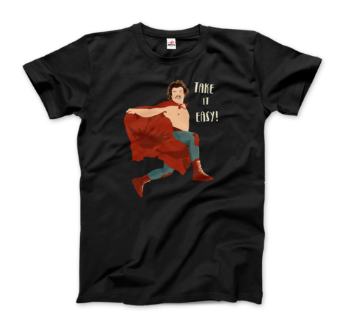 This 'Take It Easy, Nacho Libre' T-shirt makes an excellent gift for fans of the movie, wrestling enthusiasts, or anyone who appreciates unique and fun apparel. Whether it's for a birthday, holiday, or just because, this T-shirt is sure to bring a smile to the face of any recipient. Pair it with other Nacho Libre merchandise for a complete gift set!