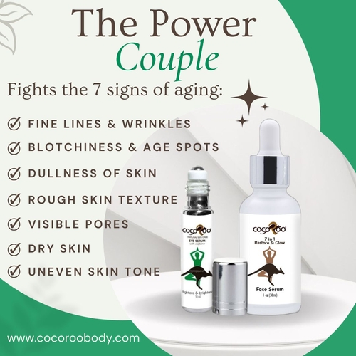 The Power Couple - Face & Eye Serum Gift Set by CocoRoo is the ultimate skincare duo designed to rejuvenate your complexion and refresh your eyes. This luxurious set includes two essential serums: the Restore & Glow Face Serum and a Caffeinated Eye Serum of your choice. Whether you're looking to enhance your skincare routine or searching for the perfect gift for a loved one, this set is a must-have.